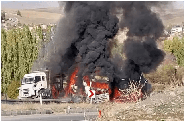 Një ngjarje e rëndë ka ndodhur në Turqi ku një autobus është përplasur me dy kamionë duke shpërthyer në flakë.