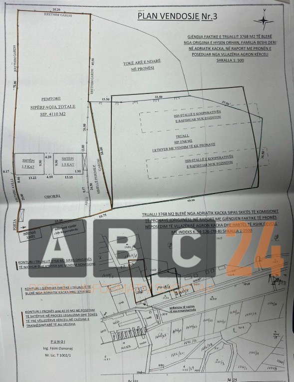 Mbi këtë sipërfaqe toke janë kryer tre skica toke, duke zhvendosur edhe objektet aktuale që ndodhen në zonë.