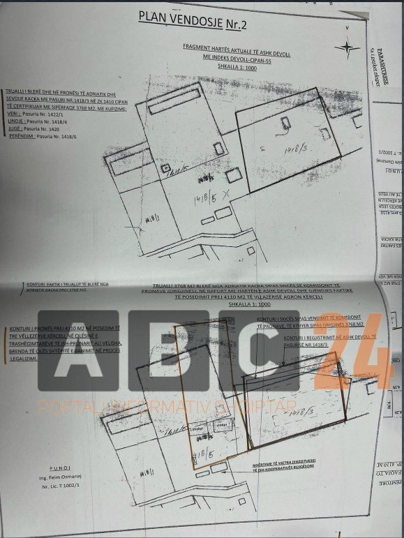 Adriatik Kaçka ka blerë një sipërfaqe toke prej 3768 m/2, në kufi me Agronin. Kjo tokë ka pronar të parë Hysen Orahanin i cili e ka përfituar me vendimin e KKKP-ish pronarëve me n.47 në datën 20.08.1997, ku më pas ia ka shitur shtetasit Gazment Beshi me një çmim prej 2.641.368 lekë më datën 22.05.2014.