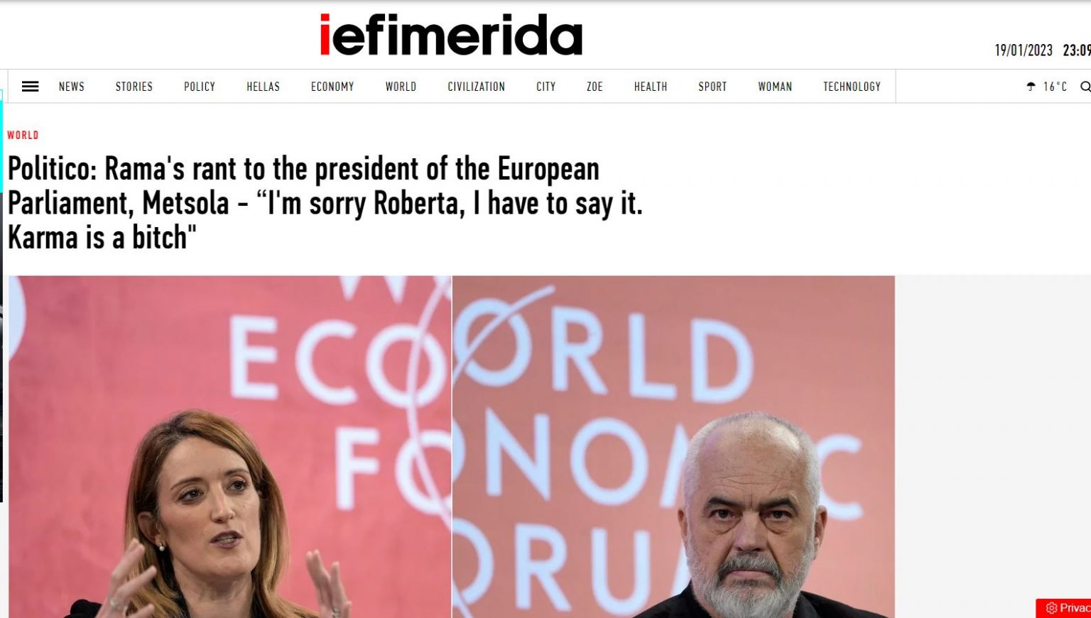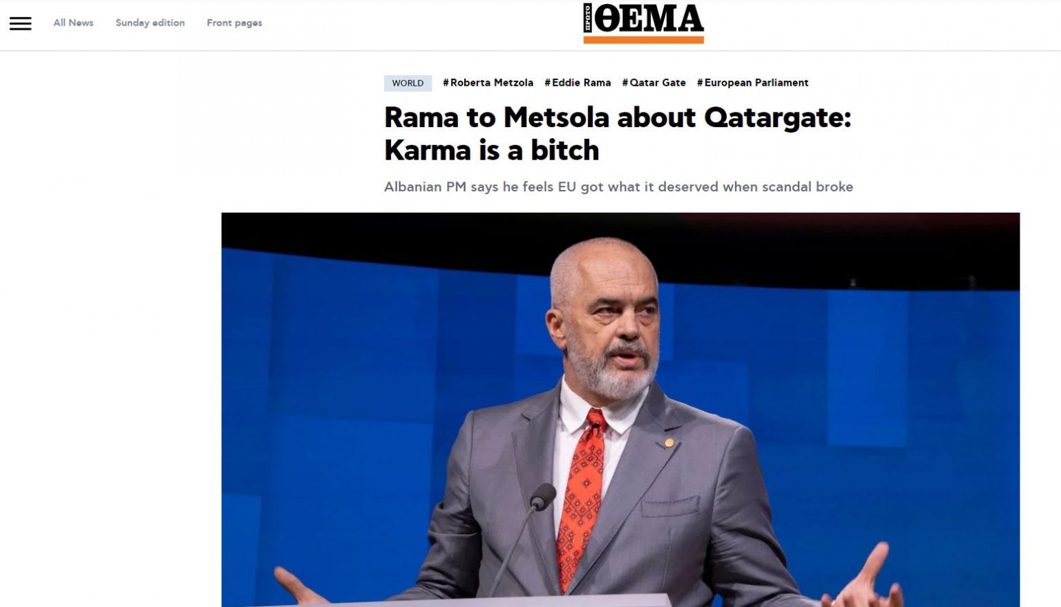 Duke folur për arrestimin e ish-zëvendëspresidentes së Parlamentit Europian, Rama duke i kërkuar falje presidentes të PE, tha në gjuhën angleze se “Karma is a bitch”.