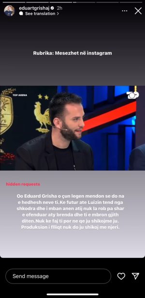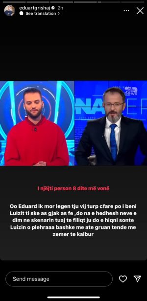Oo Eduart Grishaj, o çun legen mendon se do na e hedhësh neve ti. Ke futur atë Luizin tënd nga Shkodra dhe i mban anën ati. Nuk la rob pa sharë e ofenduar aty brenda dhe ti e mbron gjithë ditën. Nuk ke faj ti, por ne që ju shikojmë ju. Produksion i flliqt, nuk do t’ju shikojë më njeri”,- shkruan Grishaj.