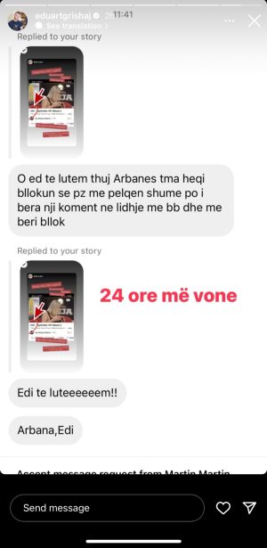 24 orë më vonë, biseda ku ndjekësi i kërkon t’i thotë Arbanës t’i heqë block-un: